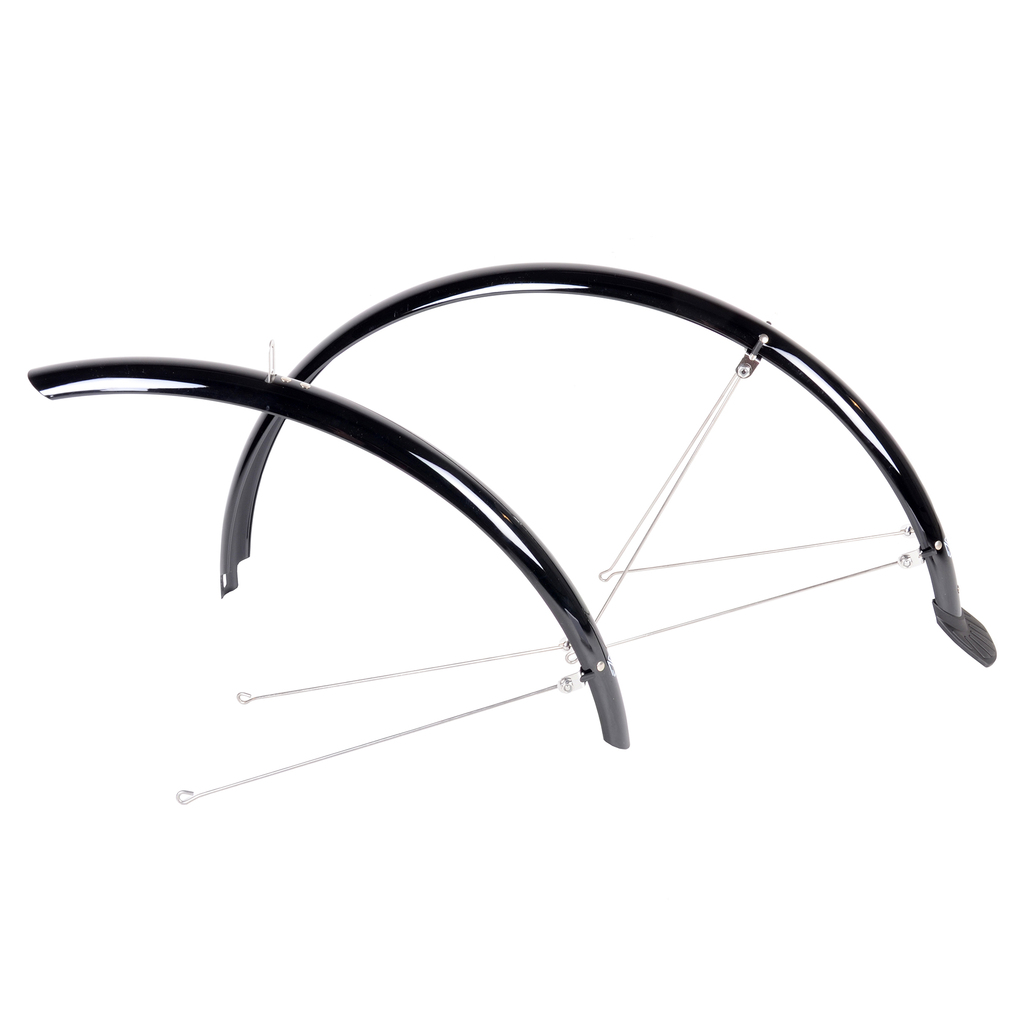 Heldekkende skjermsett med spiler. Settet passer for hybrid- og komfortsykler med 28"-hjul. Skjermsettet er 45 mm bredt.