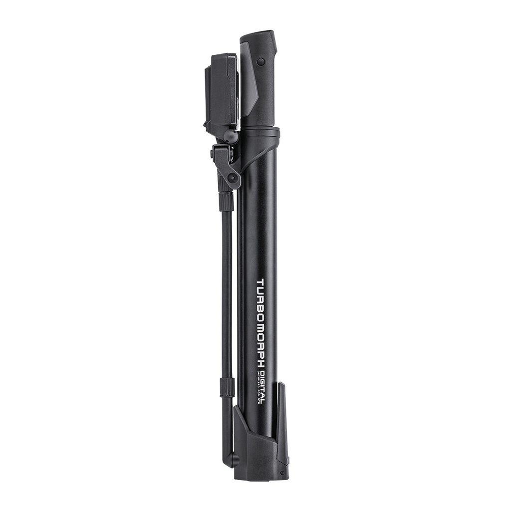 Turbo Morph Digital er en videreutvikling av prisvinnende Morph-serien, nå med et digitalt manometer. Manometeret er toppmontert, og kan flippes ned slik at det er lett se. Måleren er meget presis og har makstrykk på 160PSI/11 bar. Fleksibel slange og utfoldbar fot gjør dette til en stabil og effektiv pumpe. Perfekt til å ha i sekken eller på sykkelritt.