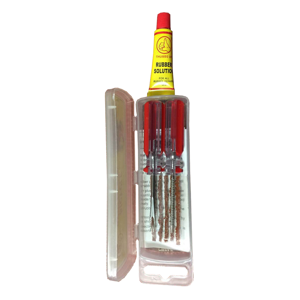 Lappesaker for å reparere punkteringer på dekk som er satt opp uten slange (tubeless). I settet følger det med 5 stk repareringsplugger, fil, lim og verktøy til å "dytte" inn gummipluggene. Settet er enkelt å bruke samt lite og lett, bare plugg dekket og du er klar til å kjøre igjen. Brukerveiledning følger med. | Pakkeantall: 10 There is no composition information for this item