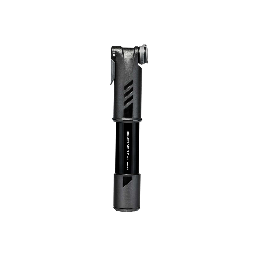 Hvis du leter etter den beste minipumpen for rask pumping, trenger du ikke lete lenger: Mountain TT Twin Turbo er en ny generasjon revelusjonerende minipumper som pumper opp dekk inntil 50% raskere og mer effektivt. Pumpen passer like godt for mountainbike, gravel, hybrid eller citysykler. TwinTurbo-teknologien bruker begge bevegelsene (innover/utover) til å komprimere luft og samtidig presse luften ut i høyt trykk slik at man sparer både tid og energi. Pumpen har integret støvhette, og tommellåsen sikrer forseglet luftpåfylling. Pumper 90.9 cc per pump.