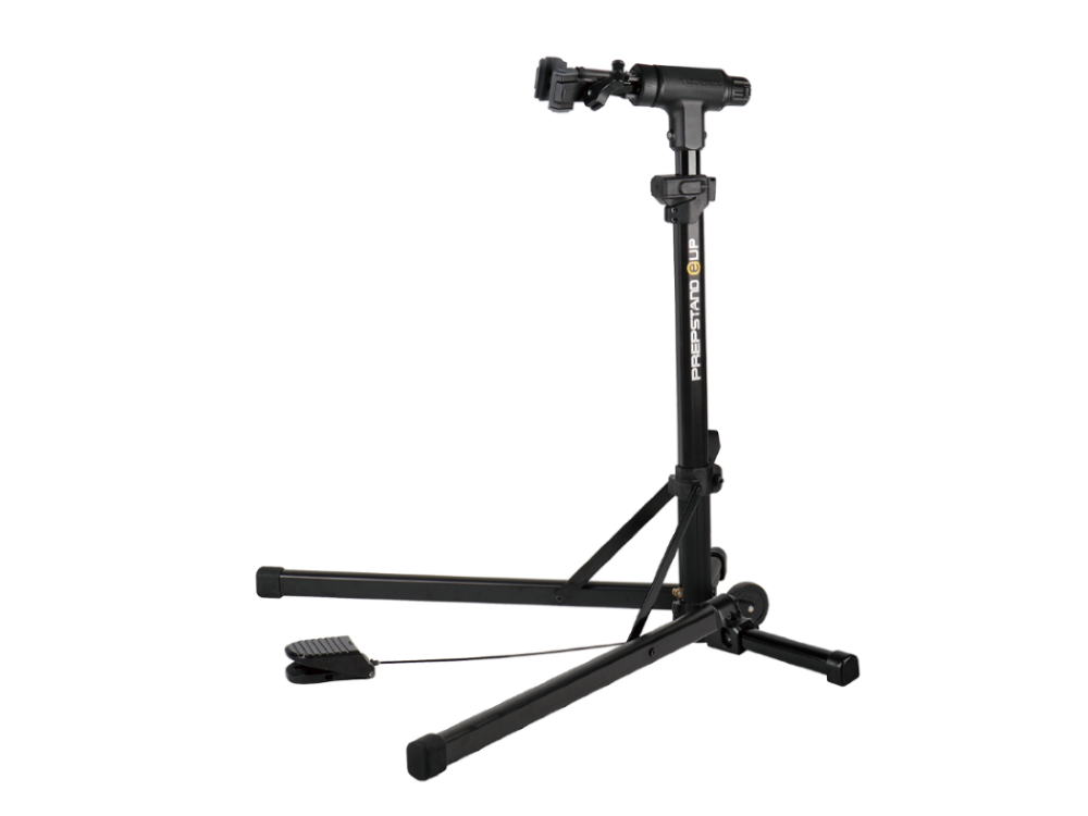 PrepStand® eUP Pro er det første løfteassisterte sammenleggbare mekkestativet som er ideelt for arbeid på elsykler og andre tunge sykler. Ekstra forsterket støtteenhet gir stabilitet mens en sykkel er montert. Den fotpedalstyrte, innebygde trykkpatronen gir ytterligere 17 kg løftekraft (hjelp) som gjør det enkelt å heve og senke de fleste sykler som veier opptil 35 kg. Et 360º roterbart klemhode med kjever som ikke skader, holder sykkelen din sikkert og stabilt under reparasjoner, rengjøring og generelt vedlikehold. Bena foldes raskt og enkelt sammen til en kompakt størrelse for reise og oppbevaring.