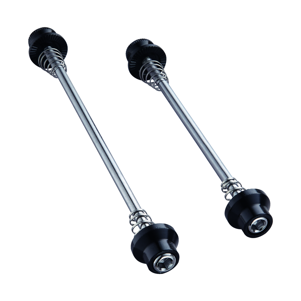 Quickrelease Set, bak 148 mm/35g og front 115 mm/31g. Settet strammes med unbrako for å gjøre det betydelig vanskeligere å stjele hjulene.