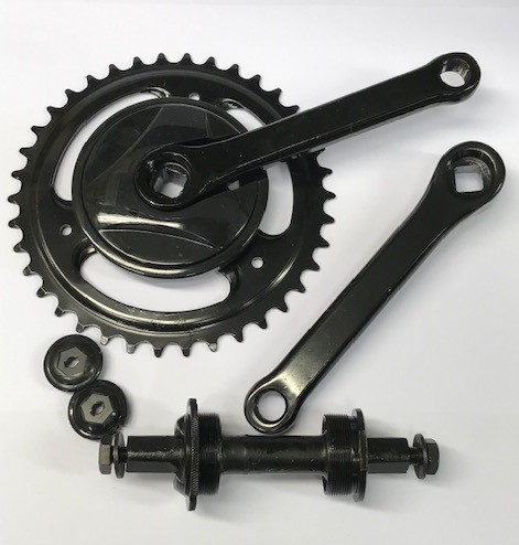 Komplett kranksett med lager. Settet har 140 mm armer og 38T krankdrev.