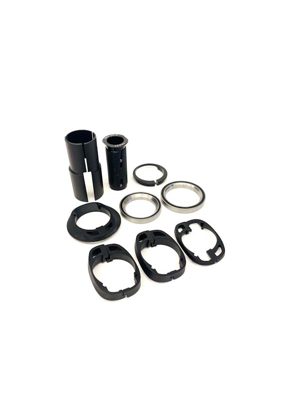 Spacer kit til MERIDA Team SL 1P (Integrert karbon styre). Settet inneholder: Expander, 1 x 5 mm Spacer, 2 x 10 mm Spacer, Neck, Force Diffuser, Split Ring, 2 x Bearings.