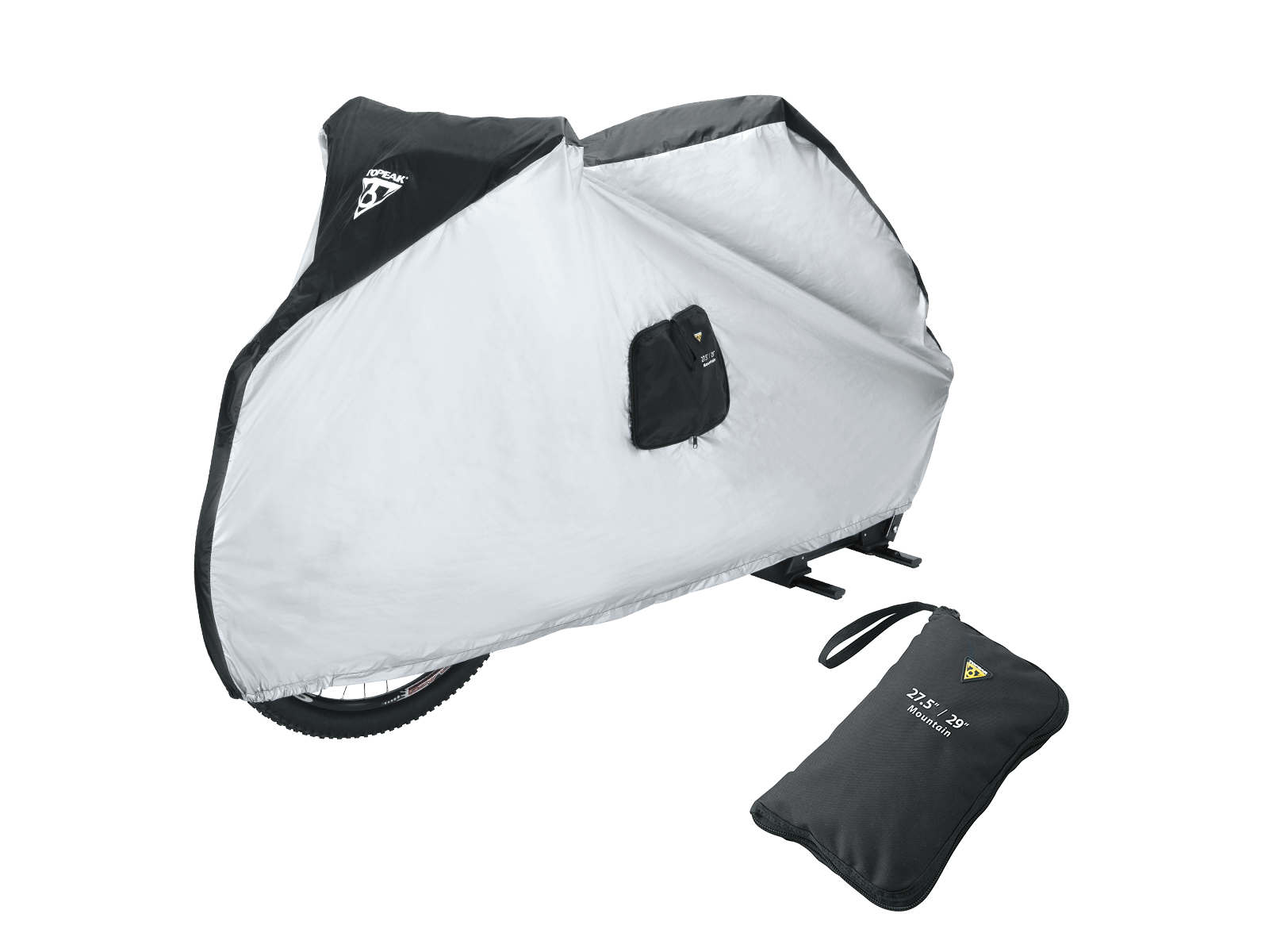 Regntrekk for 27.5" / 29" mountainbike. Trekket beskytter sykkelen godt og er sammenbrettbart ned til en kompakt størrelse. Oppbevares i en integrert pose. Topeak Bike Cover er designet kun for bruk under oppbevaring, ikke under transport på for eksempelvis på sykkelstativ. Str. 200 x 105 x 81.3 cm / 78.7” x 41.3” x 32” | Pakkeantall: 5
